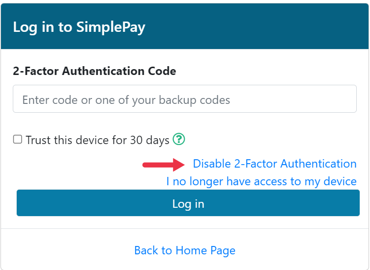 You can also disable 2FA when logging in to SimplePay. See below: